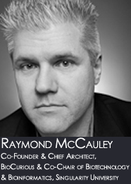 Raymond is: Chair of the Biotech Track at Singularity University (http://singularityu.org/), a Silicon Valley think tank devoted to training leaders about exponential technologies. Co-founder and Chief Architect for BioCurious (http://biocurious.org/), the hackerspace for biotech, a not-for-profit where professional scientists, DIYbio hobbyists and entrepreneurs come together to design the next big thing to come out of a Silicon Valley garage. Part of the team that developed next generation DNA sequencing at Illumina, where he worked in bioinformatics, cancer sequencing, and personal genomics. His work and story have been featured in Wired, Forbes, Time, and Nature.
